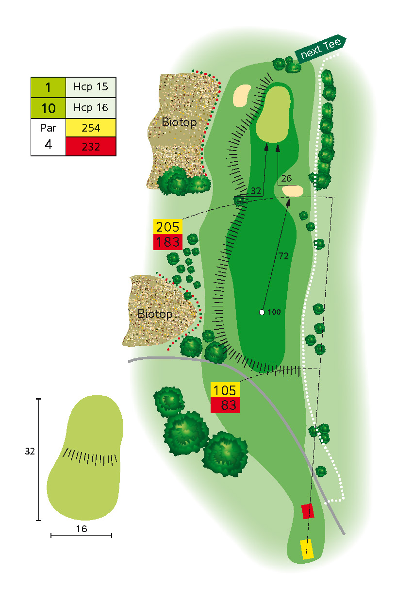 Par 4Bahn 1: HCP 15Bahn 10: HCP 16Gelb: 254 Rot: 232