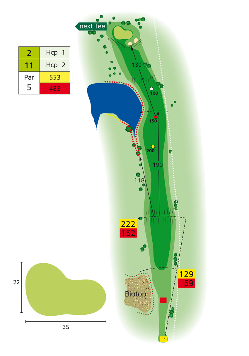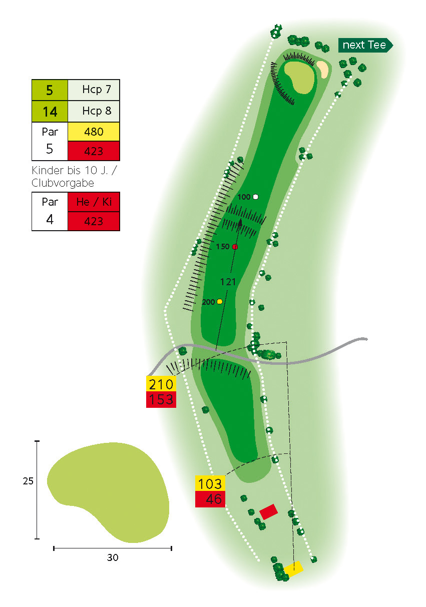 Par 5Bahn 5: HCP 7Bahn 14: HCP 8Gelb: 480 Rot: 423