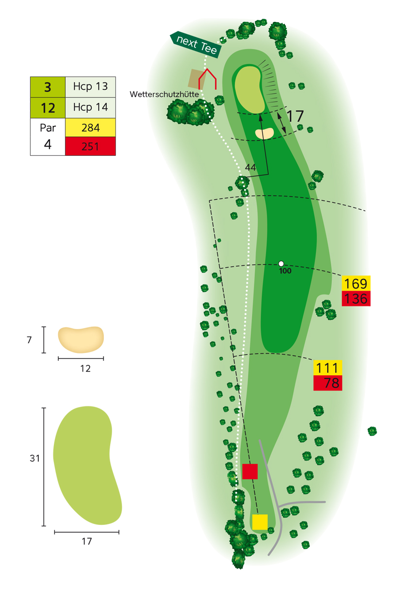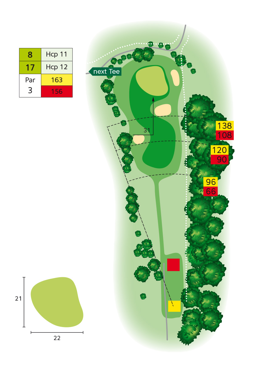 Par 3Bahn 8: HCP 11Bahn 17: HCP 12Gelb: 163 Rot: 156