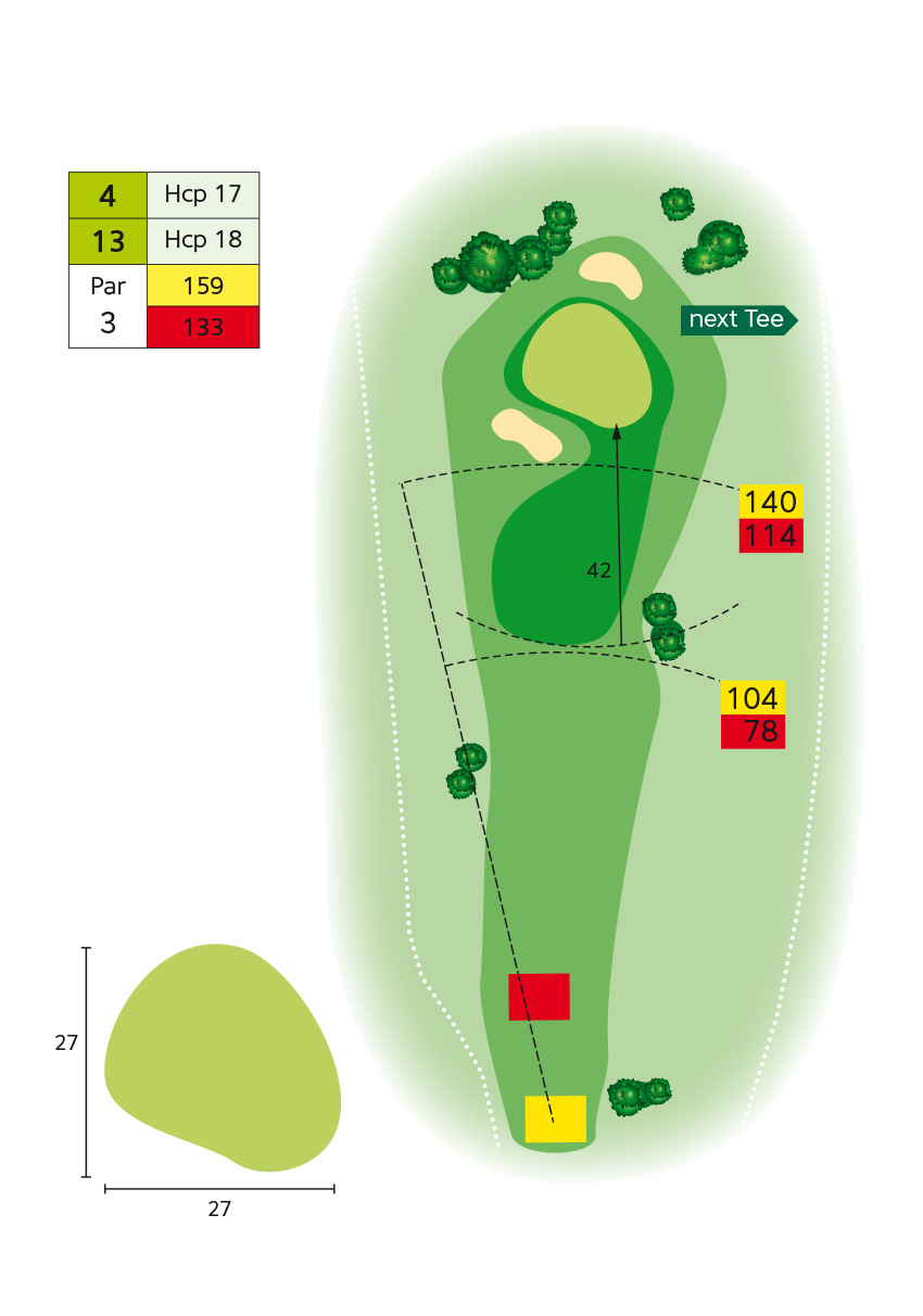 Par 3Bahn 4: HCP 17Bahn 13: HCP 18Gelb: 159 Rot: 133