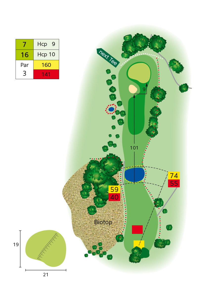 Par 3Bahn 7: HCP 9Bahn 16: HCP 10Gelb: 160 Rot: 141