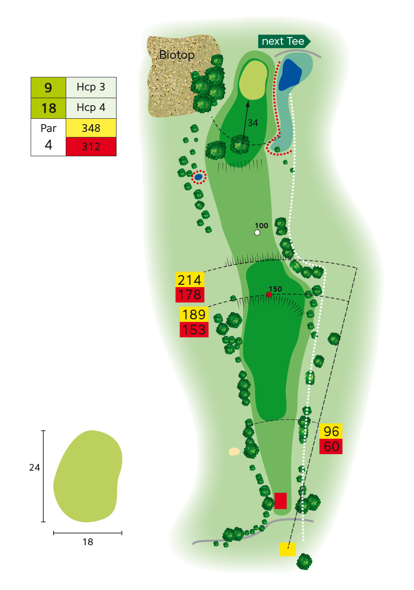 Par 4Bahn 9: HCP 3Bahn 18: HCP 4Gelb: 348 Rot: 312