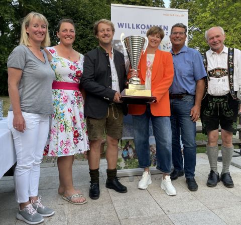 Ein Novum gab’s bei der achten Auflage des Golfturniers um den Preis der Stadt Bad Tölz: Zum ersten Mal gewann ein Spieler, der die Trophäe schon einmal errungen hatte: Maximilian Sparrer, Herren-Sieger 2021, der zwei Wochen zuvor auch beim Benefizturnier der Krebshilfe erfolgreich gewesen war und seine gute Form offensichtlich konservieren konnte. Auf dem trotz der langen Trockenperiode sehr gut bespielbaren Isarwinkler Golfplatz legte Maximilian Sparrer eine starke 73-er-Runde hin, auch dank vier Birdies. Und bei der Gelegenheit schnappte sich der Turniersieger auch noch den Preis für den „Longest Drive“, den längsten Abschlag, der nach Einschätzung von Augenzeugen annähernd 300 Meter lang gewesen sein dürfte. Doppelt taucht auch der Name von Bettina Wechsel in der Siegerliste auf. Die Bruttogewinnerin ließ einer 42 auf den ersten neun Löchern auf Runde zwei bärenstarke 37 Schläge folgen und blieb auch beim Longest Drive unerreicht. Titelverteidigerin Karolina Haferkorn konnte in den Kampf um den Spitzenplatz diesmal nicht eingreifen. Allerdings war’s der Zahnärztin hoch anzurechnen, dass sie sich trotz Notdienstes der Konkurrenz stellte. Die Familienwertung entschied Vater Fritz Haferkorn für sich, der trotz einer verheerenden Zehn auf Bahn zwei mit 80 Schlägen ein Klasseresultat ablieferte und mit 43 Punkten das beste Nettoergebnis aller Teilnehmer erreichte. Mit einem Kunstschuss sorgte Peter Liebhart für Aufsehen: Dem Vorjahressieger gelang am ersten Grün ein rarer Eagle, als er auf der Par 4-Spielbahn aus gut 80 Metern mit dem zweiten Schlag einlochte. Liebhart ließ eine sehr gute 77er-Runde folgen. hst